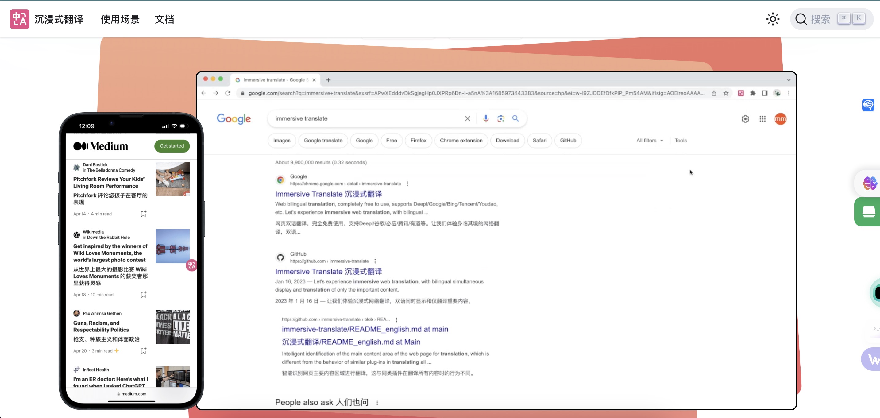 – 谷歌Chrome浏览器:在Chrome商店搜索”沉浸式翻译”。