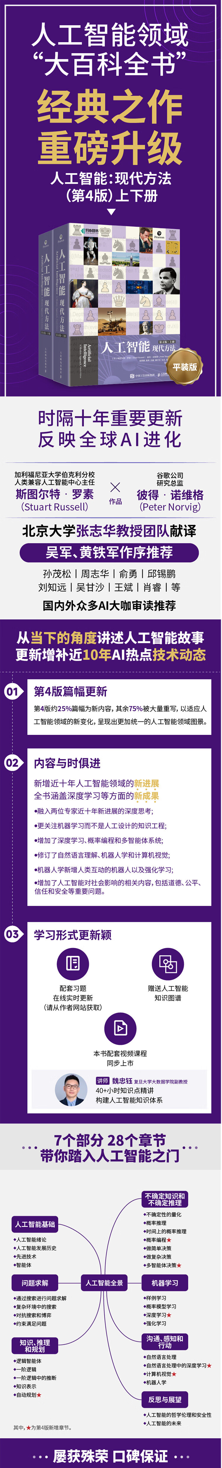 这是一本面向人工智能大领域的“大”书,作者也是大学者,连译者都是大学者领衔的团队,堪称经典之作,非常值得初学者、从业者、教师及科研工作者等专业人员阅读。