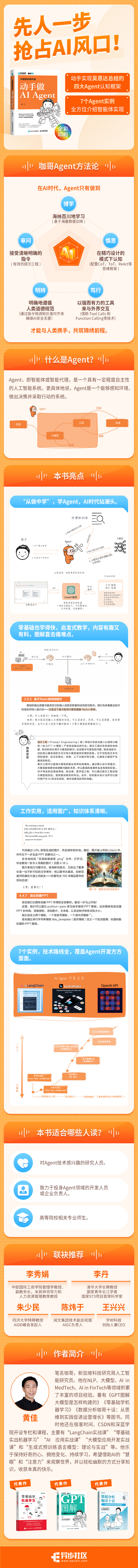 从零开始,循序渐进,图解直击痛难点:本书以图解的方式从基础概念入手,逐步深入技术原理和应用,以启发式教学帮助读者逐步深入了解Agent的各个方面,而不会感到晦涩难懂。